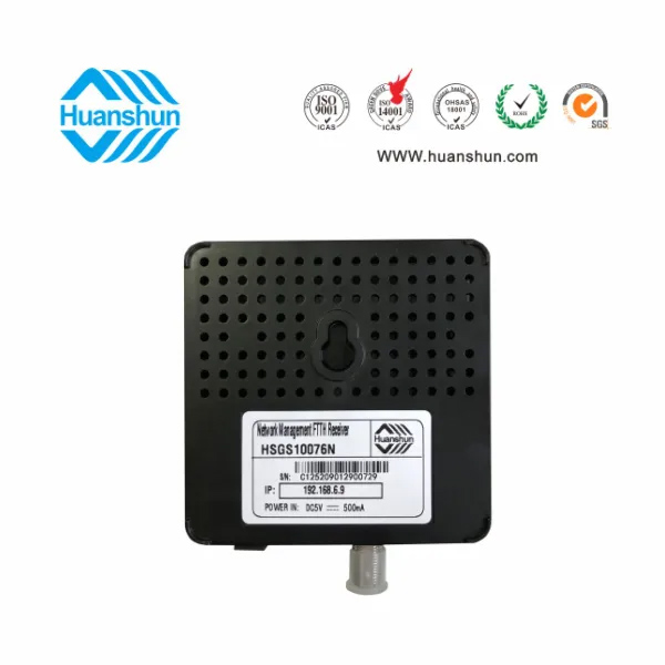 網(wǎng)管型帶濾波 FTTH 光接收機(jī) | HSGS10076DN | 1540~1650nm接收,-2~-12dBm/RFMD 82dBuv恒定輸出,(RJ45標(biāo)準(zhǔn)網(wǎng)口),外置90~255V 5V 0.5A電源適配器 |